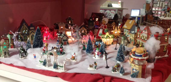 That corner is filled now with the spirit and joy that is Christmas. Many thanks to the elves that made this village happen!