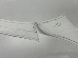 Step Two: Use your back piece as a guide to create what we’ll be calling the “Top Back” You’ll want the centre point to start 1.5 inches from the top. Using the hip point, connect to the centre point you just made using a slight curve.